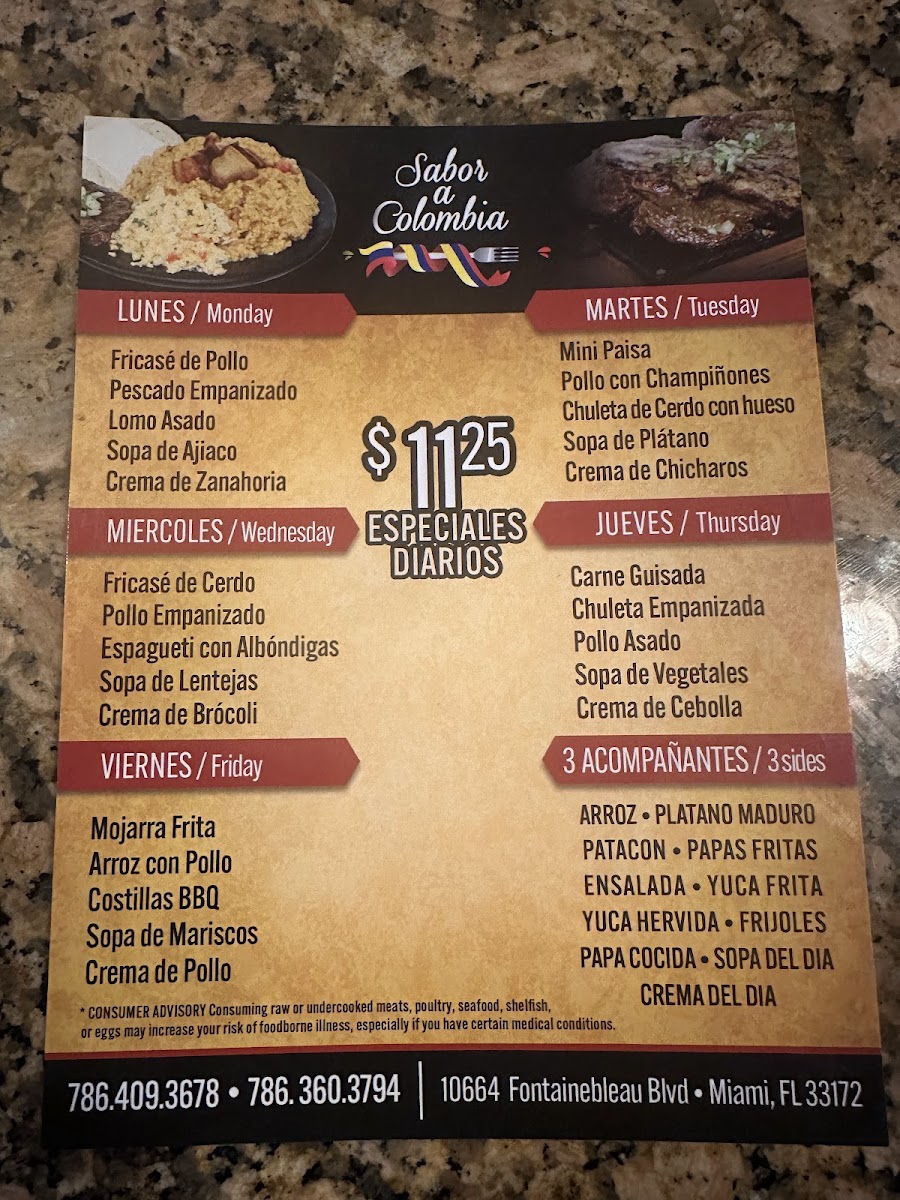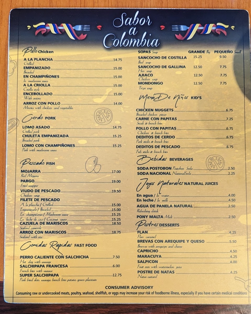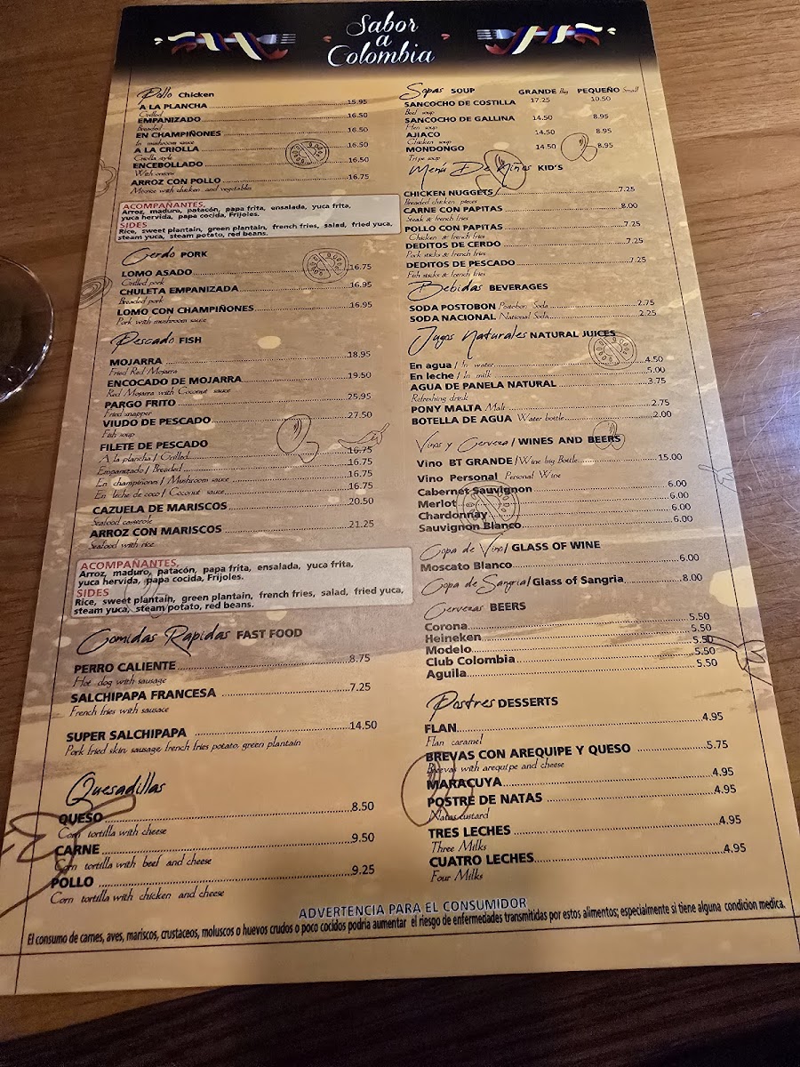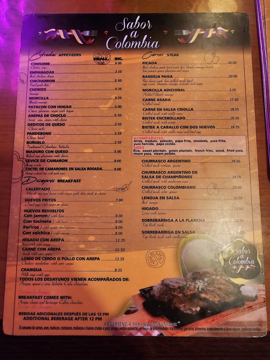 The menu supports both casual dining experiences and quick orders, suitable for breakfast, lunch, and dinner. Visitors can choose from light meals to more substantial dishes reflecting authentic Colombian flavors.